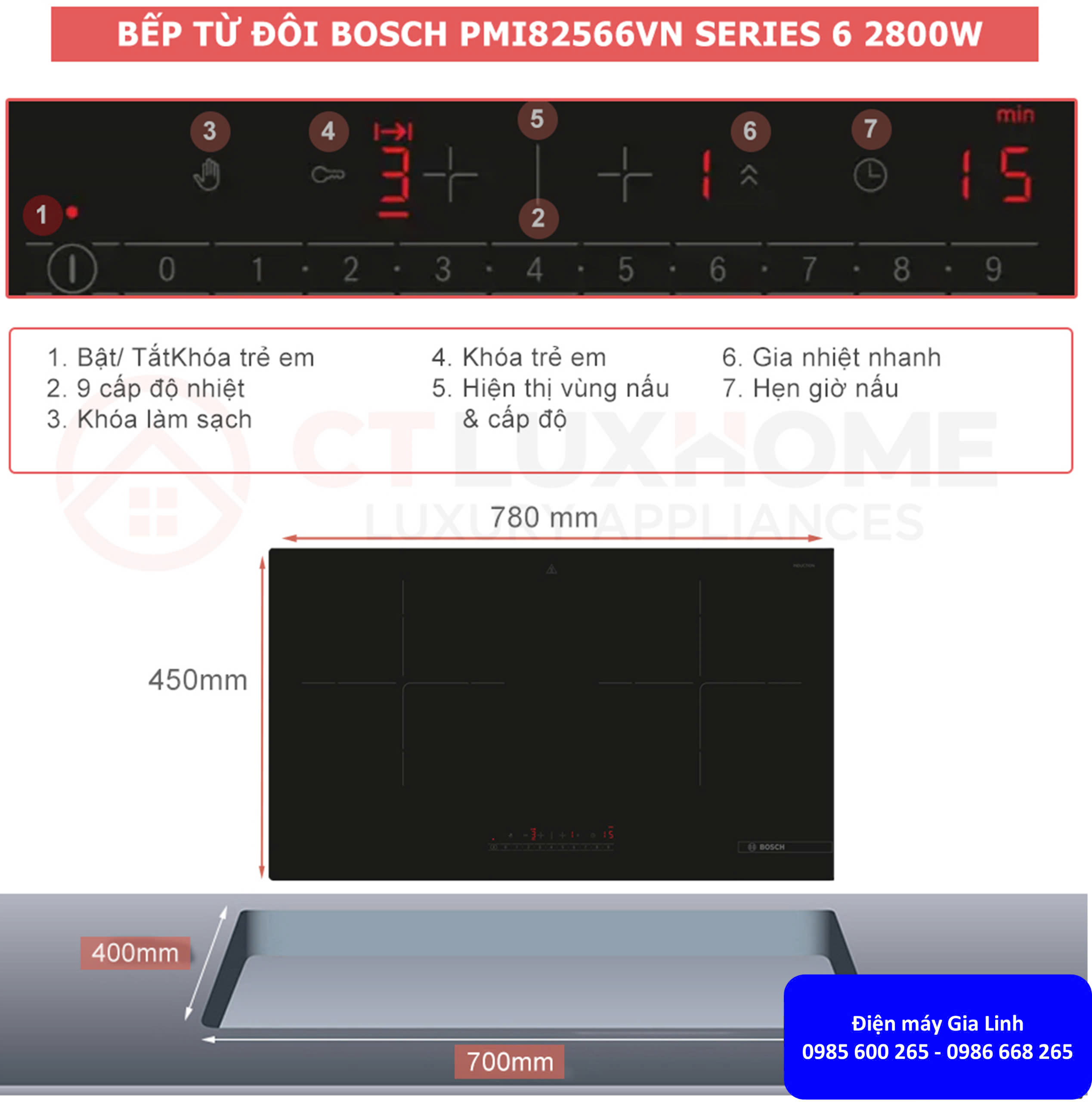 Bếp từ đôi Bosch PMI82566VN Series 6 2800W