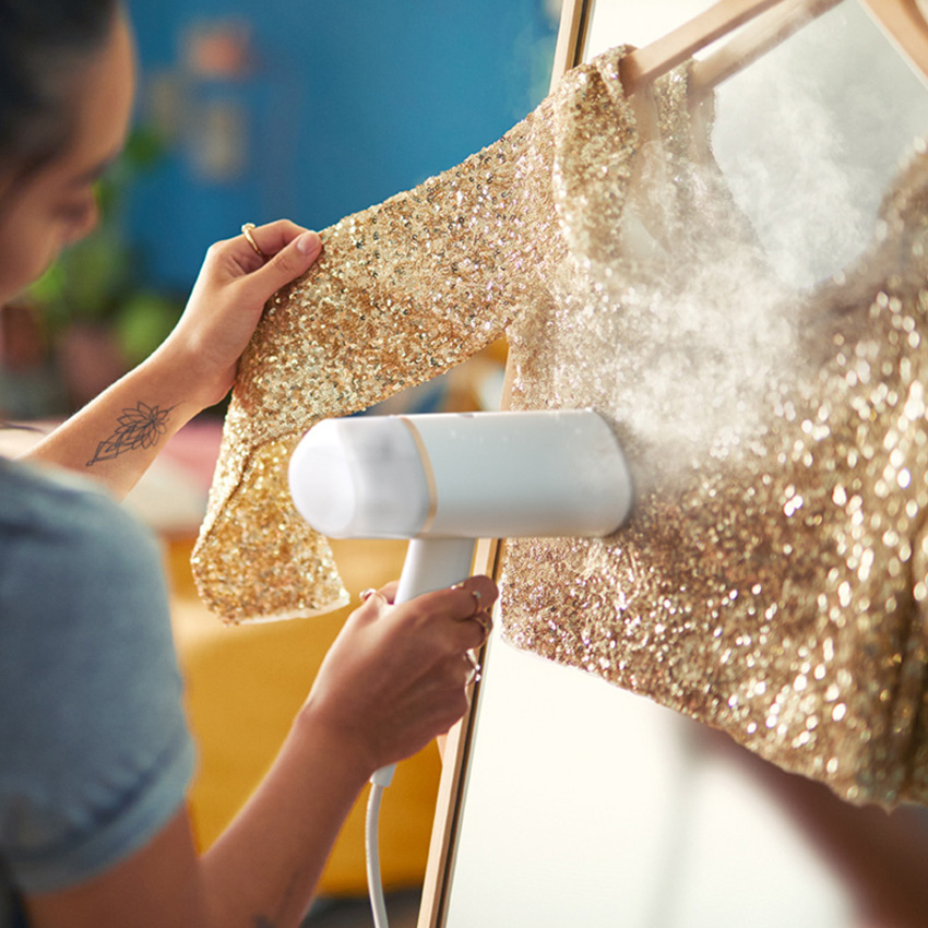 Bàn ủi hơi nước Philips có khả năng tiêu diệt 99,9% vi khuẩn và 100% mạt bụi. Bạn thậm chí có thể ủi rèm cửa và ga trải giường bằng hơi nước. Hơi nước nóng giúp loại bỏ mùi hôi và làm mới quần áo chất liệu tinh xảo của bạn ngay lập tức.