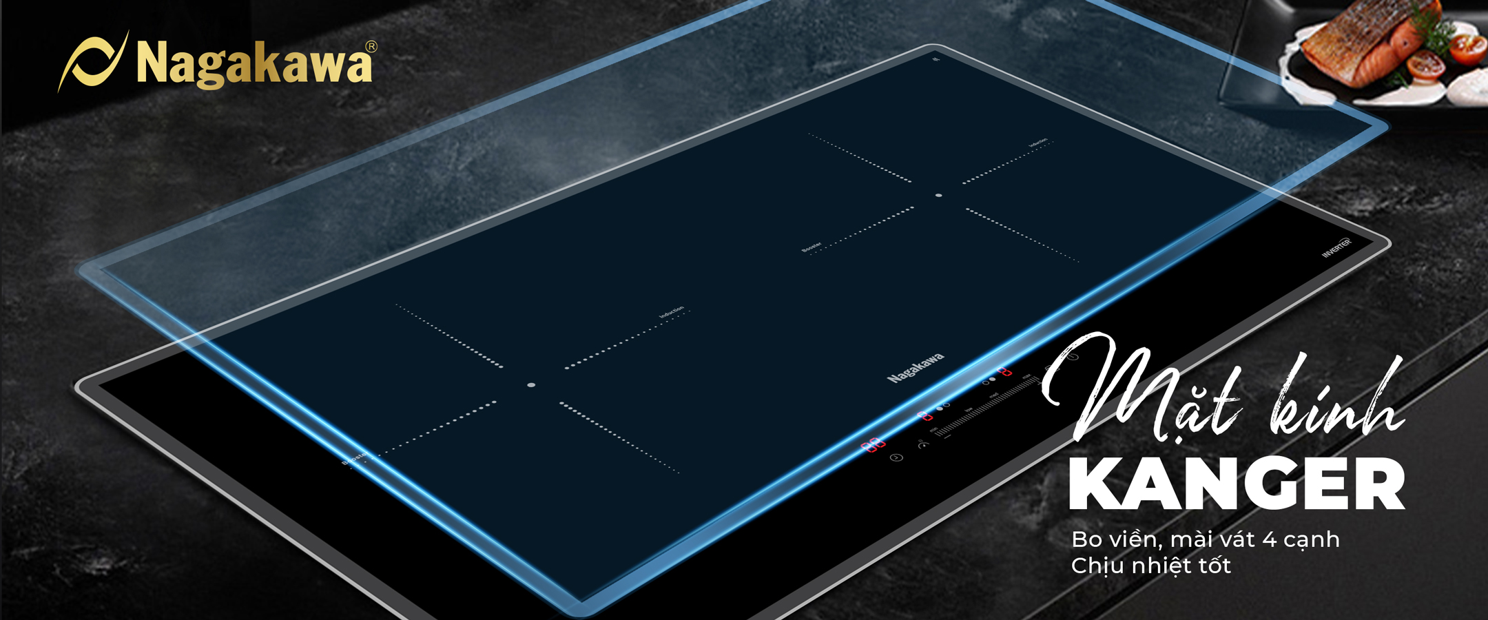 Bếp đôi điện từ Nagakawa UltraSlim NK2C22MB nổi bật nhờ thiết kế sang trọng, mặt kính bếp Kanger mài vát bo viền 4 cạnh sang trọng, mỏng hơn 30% so với bếp điện từ thông thường giúp giải phóng tối đa không gian, mang hơi thở hiện đại vào không gian bếp của bạn.