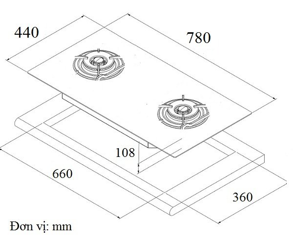▶️ Kích thước sản phẩm: 780R x 440S x 108C mm