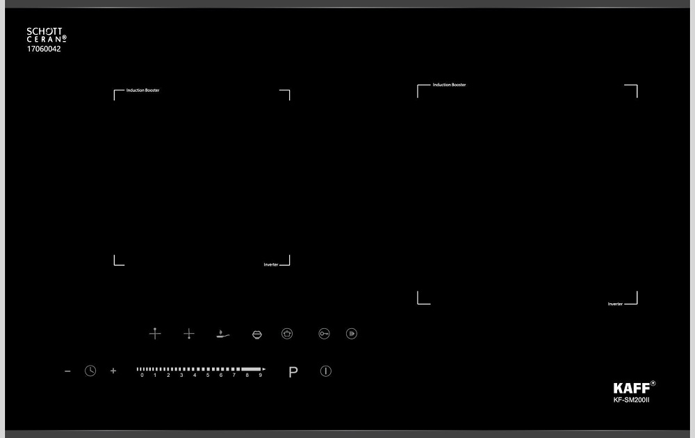 Bếp từ Kaff KF-SM200II trang bị mặt kính Schott Ceran cao cấp sáng bóng được mài vát nghệ thuật 02 cạnh trên và dưới