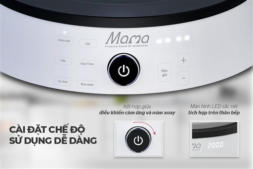 Bếp từ đơn SUNHOUSE MAMA SHD6885 có dáng tròn mới lạ cùng màu trắng sang trọng. So với dáng bếp vuông truyền thống, bếp dáng tròn nhỏ gọn và độc đáo hơn.