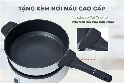 Tặng kèm bếp là một nồi lẩu đáy từ dày dặn, lòng nồi phủ chống dính cao cấp. Phụ kiện dùng được như nồi lẩu hoặc chảo chống dính khi chiên xào… , vô cùng tiện lợi cho cả gia đình quây quần dịp lễ lạt, cuối tuần…