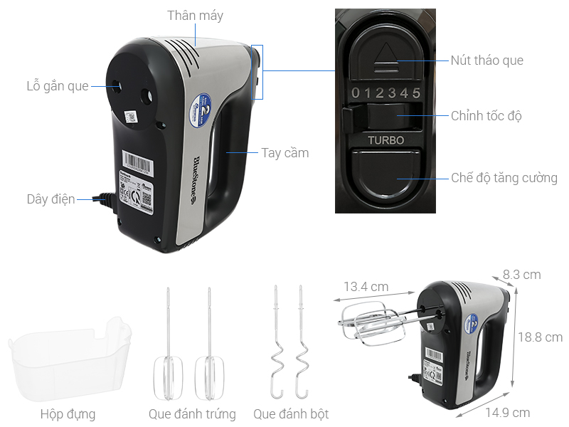 - Công suất 400W: Đánh trứng, nhào bột nhanh chóng, tiết kiệm thời gian