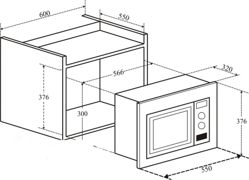 - Kích thước khoét gỗ: 566R x 376C x 550S
