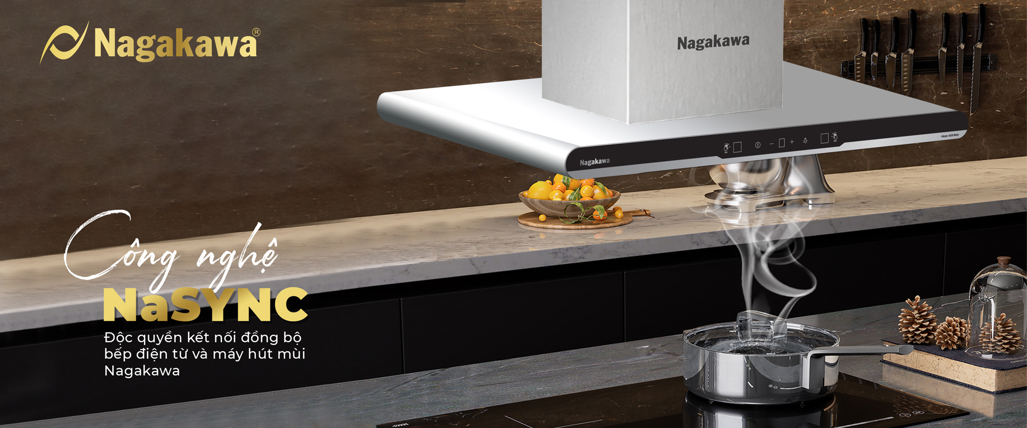 Tích hợp công nghệ NaSYNC - Công nghệ kết nối đồng bộ máy hút mùi và bếp từ độc quyền của Nagakawa, giúp tự động cảm biến bật tắt máy hút mùi rất tiện dụng, tối giản thao tác, tiết kiệm thời gian.
