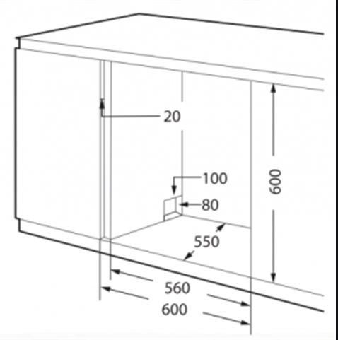 • Kích thước khoét âm tủ: 560R x 550S x 600C.