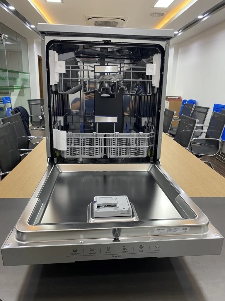 Bên trong máy được trang bị 2 tầng khay và 1 giỏ để đũa ly cốc giúp bạn có thể sắp xếp bát đĩa chén, phụ kiện nhà bếp đa dạng với nhiều kích thước, chủng loại vào trong máy để vệ sinh một cách dễ dàng. Hệ thống điều khiển cảm ứng kỹ thuật số Digital, đèn báo hiển thị LED.