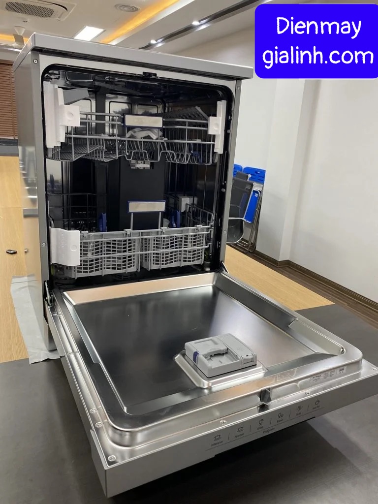 Bên trong máy được trang bị 2 tầng khay và 1 giỏ để đũa ly cốc giúp bạn có thể sắp xếp bát đĩa chén, phụ kiện nhà bếp đa dạng với nhiều kích thước, chủng loại vào trong máy để vệ sinh một cách dễ dàng. Hệ thống điều khiển cảm ứng kỹ thuật số Digital, đèn báo hiển thị LED.