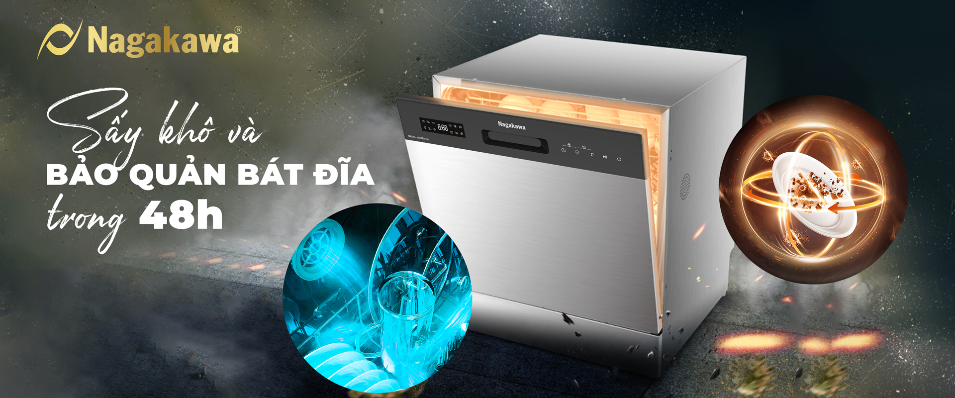 Máy rửa bát Nagakawa NK10D01M sở hữu công nghệ sấy dưỡng khí tươi NaFRESH 360, giúp bát đĩa không chỉ sạch bong sáng bóng mà còn được sấy khô an toàn.