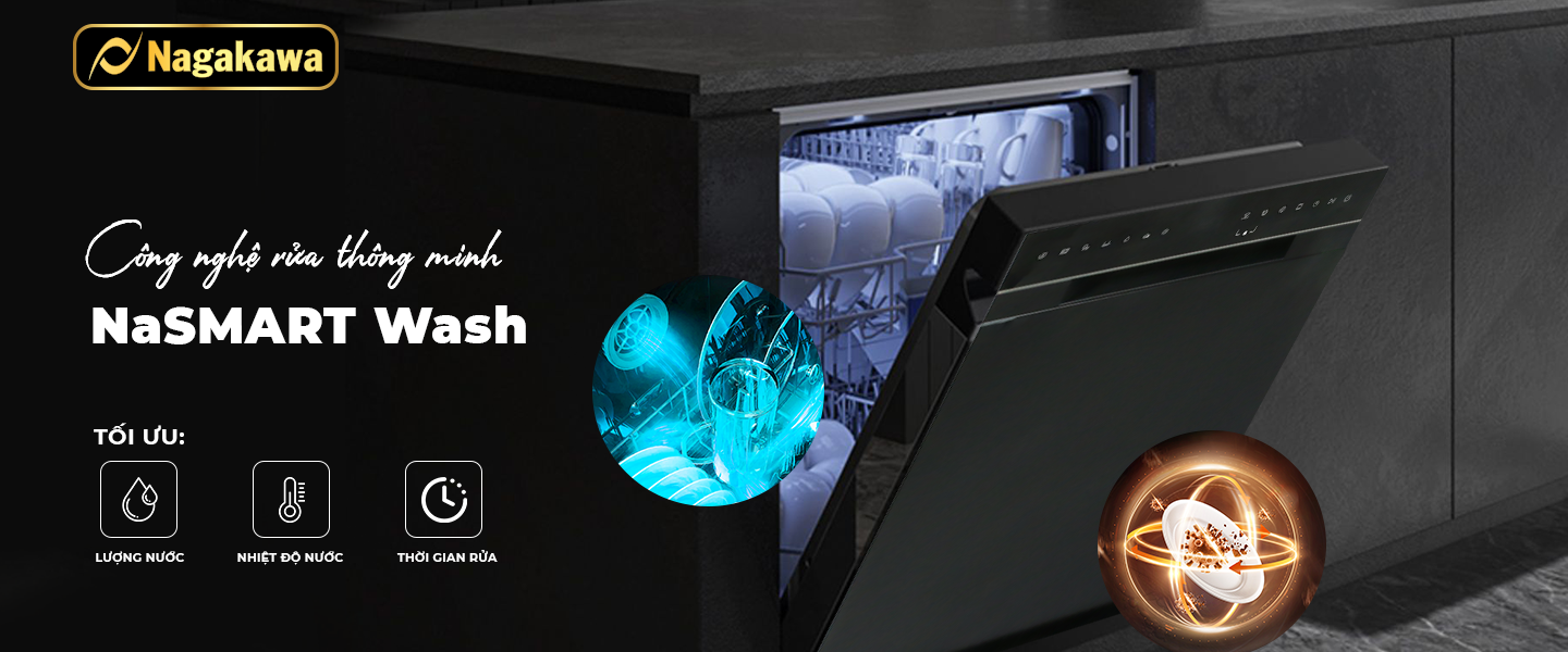 - Công nghệ NaSMART Wash chương trình rửa thông minh