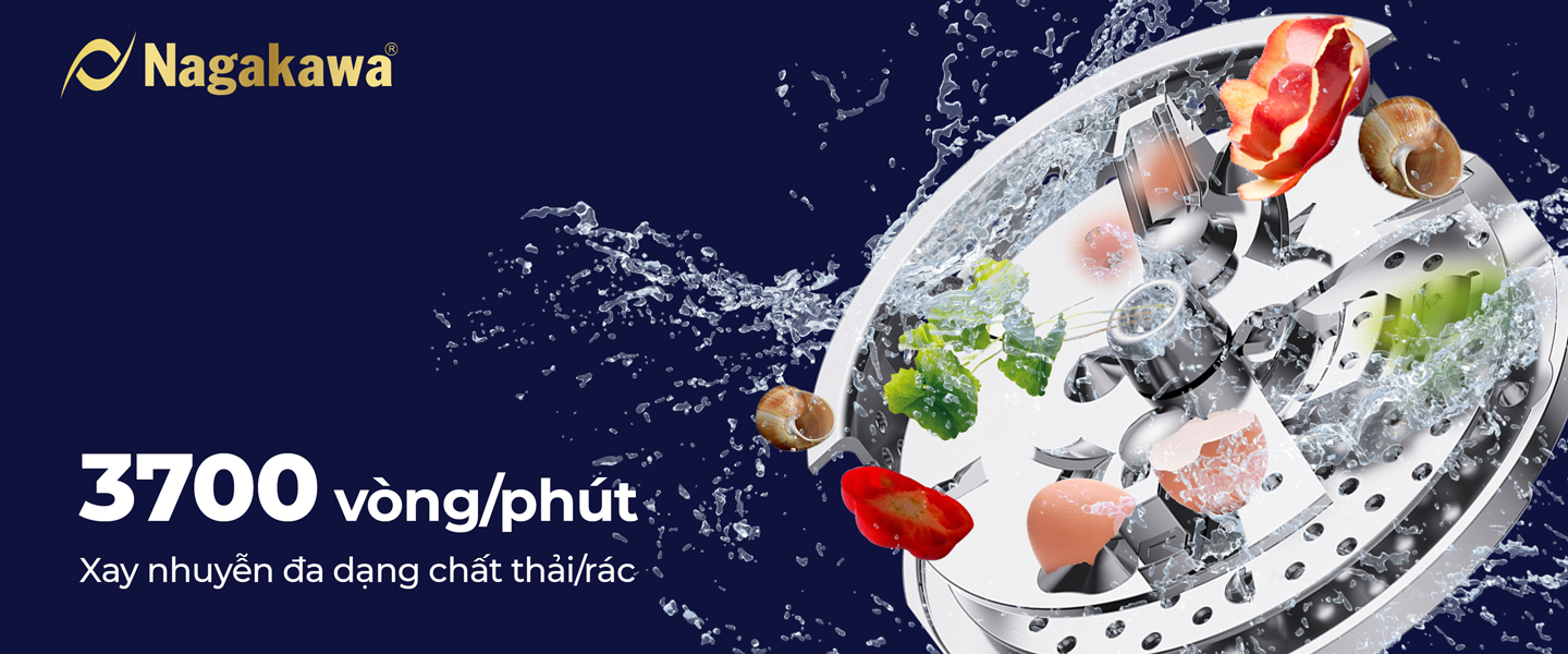 Máy xử lý rác thải công suất lớn có tốc độ quay lên đến 3700 vòng/phút cùng lưỡi xay thép không gỉ có thể nghiền nhỏ mọi loại thức ăn thừa như rau củ, xương động vật, vỏ sò,... Rác thải có thể được xả theo dòng nước xuống cống mà không sợ tắc nghẽn.