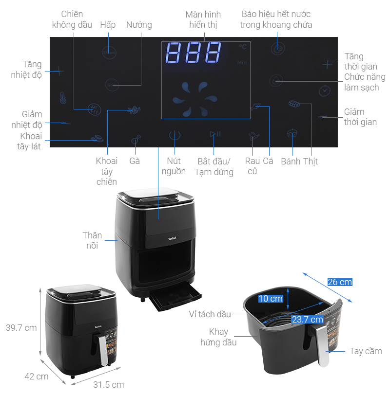 Nồi chiên không dầu kết hợp hấp Tefal FW201815 6.5 lít