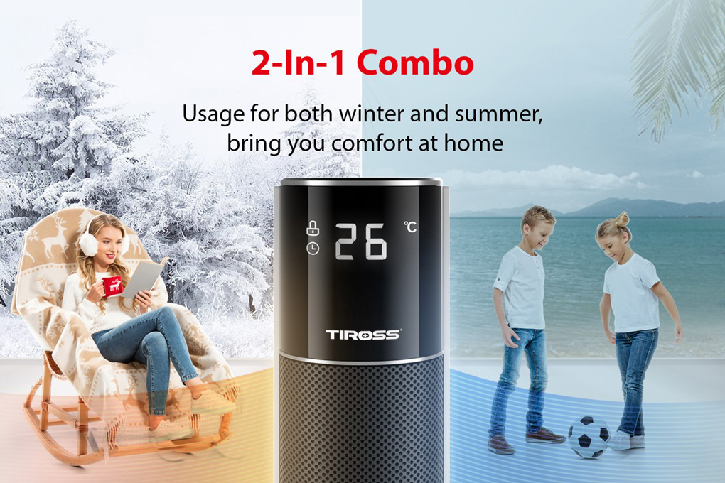 Quạt sưởi Ceramic Tiross có điều khiển TS9443 sở hữu kiểu dáng thanh mảnh và gọn gàng, màu sắc sang trọng mang nét hiện đại, phù hợp với nhiều không gian khác nhau như gia đình, văn phòng cơ quan với diện tích rộng khoảng 15 – 25m2. Người dùng có thể dễ dàng di chuyển quạt sưởi tới nhiều vị trí, không bị đặt cố định một chỗ, mang đến sự tiện lợi khi sử dụng, không tốn nhiều diện tích đồng thời tạo điểm nhấn nổi bật cho không gian sử dụng.