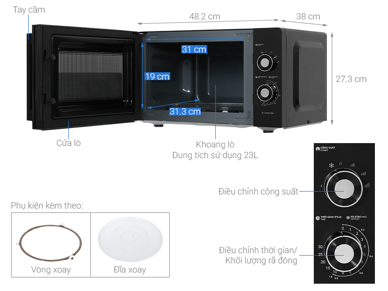 • Dung tích 23 lít phù hợp sử dụng trong gia đình nhỏ hoặc nhu cầu hâm nóng, rã đông hằng ngày.