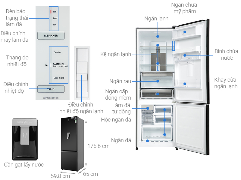 - Ngăn lấy nước bên ngoài giúp lấy nước tiện lợi, hạn chế thất thoạt hơi lạnh