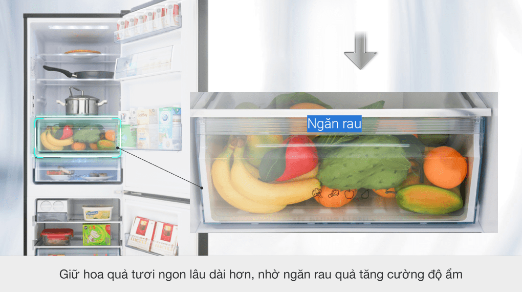 Tủ lạnh này có ngăn dành riêng cho bảo quản rau củ và trái cây nhằm giúp giữ lại độ tươi ngon của chúng, cho bạn sự lựa chọn phong phú về thực phẩm trong gia đình mình.